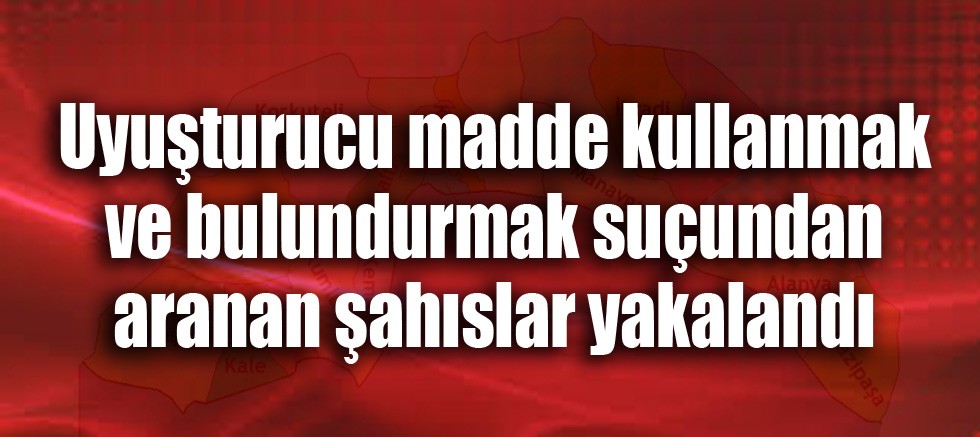 "Manavgat Cumhuriyet Başsavcılığı koordinesinde; Antalya İli,Manavgat İlçesinde, uyuşturucu madde ile mücadele ve aranan şahısların yakalanmasına yönelik yürütülen çalışmalar neticesinde Antalya İl Jandarma Komutanlığı KOM Şube Müdürlüğü ve Manavgat ilçe Jandarma Komutanlığı ekipleri tarafından düzenlenen operasyonda Ö. Y. (13 adet suç kaydı var), S. İ. (19 adet suç kaydı var ) ve G. G. (6 adet suç kaydı var) isimli şahıslar yakalanmıştır. Şüpheli şahısların yapılan üst aramasında;