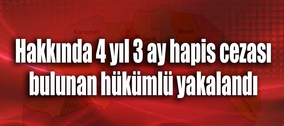 Hakkında 4 yıl 3 ay hapis cezası bulunan hükümlü Antalya'nın Kepez ilçesi Varsak mahallesinde yakalandı.