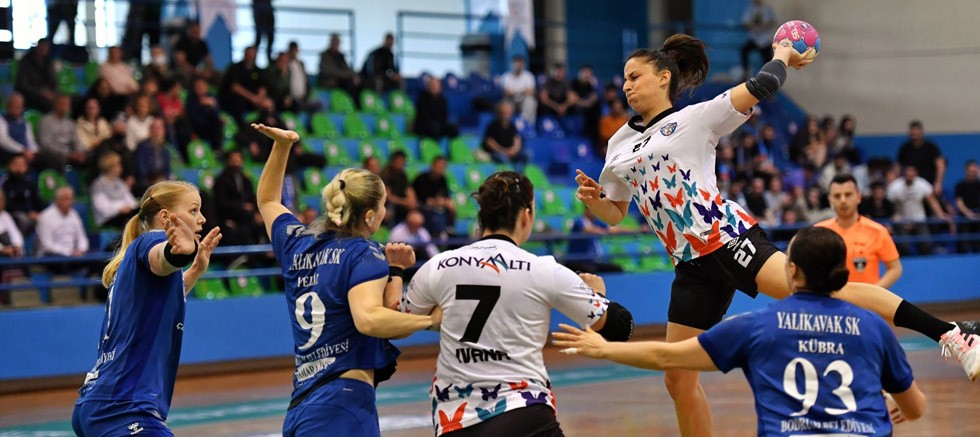 Hentbol Kadınlar Süper Ligi’nde, puan durumunda 2 ve 3’üncü sırayı paylaşan Konyaaltı Belediyespor ve Yalıkvakspor Bodrum Binnaz Karakaya Spor Salonu’nda karşı karşıya geldi. İlk yarısı ev sahibi ekibin 16-15 üstünlüğü ile sona eren karşılaşmanın ikinci yarısında hücum oyuncularıyla etkili olan Konyaaltı Belediyespor, hem oyun hem de skor olarak üstün olan taraftı. Son saniyelere kadar bu üstünlüğünü sürdüren Mavi Kelebekler, bitime beş saniye kala aleyhine verilen tartışmalı bir penaltı golüne engel olamayarak sahadan 29-29 beraberlikle ayrıldı. Bu sonuçla puan durumunda 3’üncü sıradaki yerini koruyan Konyaaltı’nda gözler hafta içinde oynanacak Türkiye Kupası çeyrek final mücadelesine çevrildi.