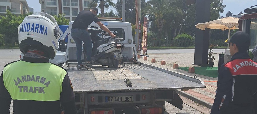 "Antalya İl Jandarma Komutanlığı, Trafik Şube Müdürlüğüne bağlı Alanya İlçe Jandarma Komutanlığı Trafik Kısım Komutanlığınca yapılan araştırmalar sonucunda Trafik Güvenliğini Tehlikeye Sokmak suçunu işlediği tespit edilen ve kimlikleri belirlenen motosiklet sürücüsüne 2918 Sayılı K.T.K.nun ilgili maddelerinden 32.887 ₺ idari para cezası uygulanmış ve motosiklet trafikten men edilmiştir. Antalya İl Jandarma Komutanlığı olarak denetimlerimiz aralıksız devam edecektir. Kamuoyuna saygıyla duyurulur."
