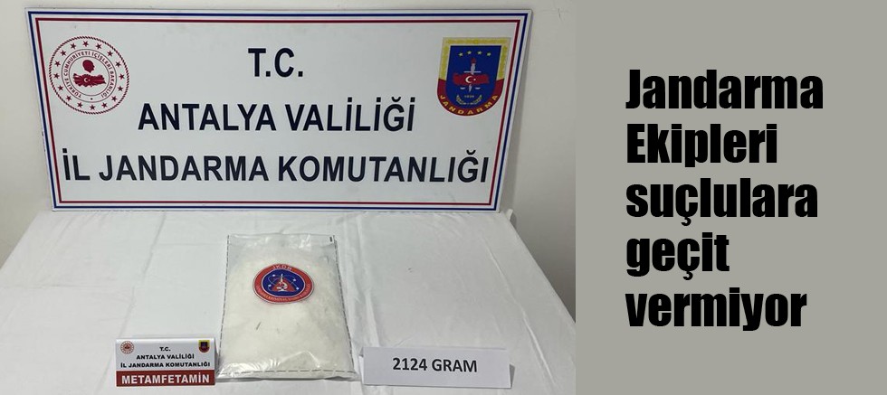 Antalya Valiliği İl Jandarma Komutanlığı ekiplerinin uyuşturucu madde imalatı ve ticaretine yönelik sürdürdüğü başarılı çalışmalar devam ediyor. Yapılan çalışmalar sonucu elde edilen bilgiler doğrultusunda harekete geçen jandarma ekipleri, 2 kilo 124 gram metamfetaminin ele geçirildiğini belirtti.