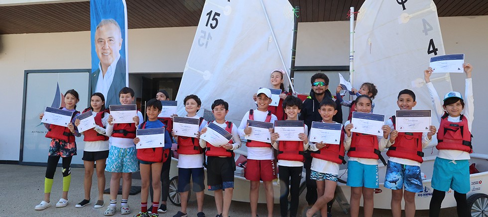 Büyükşehir Belediyesi Gençlik ve Spor Hizmetleri Daire Başkanlığı geleceğin sporcularını yetiştirmeye devam ediyor. Konyaaltı Varyant altında yer alan Antalya Yelken Kulübünde bu yıl ilk kez düzenlenen kurslara katılan 6-12 yaş arası 15 öğrenci, üç haftalık eğitimlerinin ardından başarı sertifikalarını düzenlenen törenle aldı. Türkiye Yelken Federasyonu onaylı Türk yelken eğitim programı D-1 başarı sertifikalarını alan minikler geleceğin yelken sporcusu olma yolunda ilk adımını attı. Miniklere deniz sevgisi ve yelken sporunun aşılanması sağlanan yelken kursunda teorik ve suda uygulamalı eğitimler verilerek yelkenciliğin temel ilkeleri öğretildi.