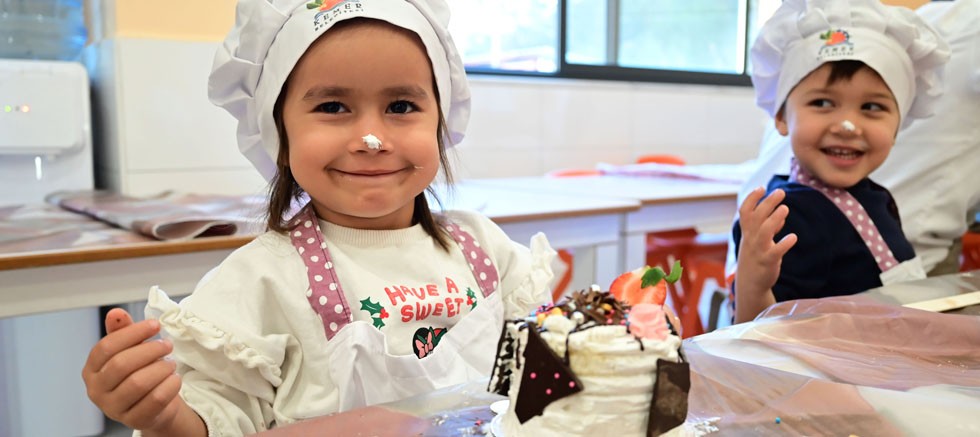 Aşçı kıyafetlerini giyerek pasta yapan minikler, hem eğlendi hem de yaptıkları pastaları yemenin keyfini çıkardı.
