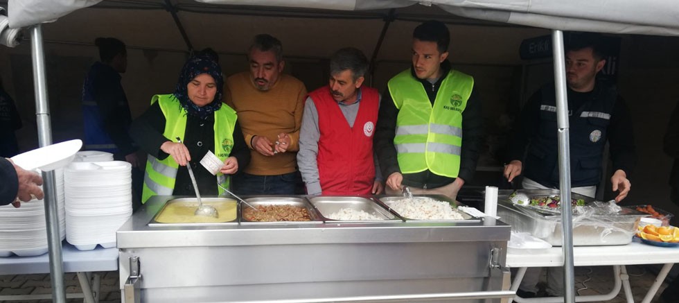 Bu çerçevede Kaş Belediyesinin desteğiyle ilçede afetzedelere sıcak yemek dağıtılıyor. Yemeklerin dağıtımı, Merkez Camii’nin bahçesinde görevli belediye personelleri ve gönüllüler tarafından yapılıyor.