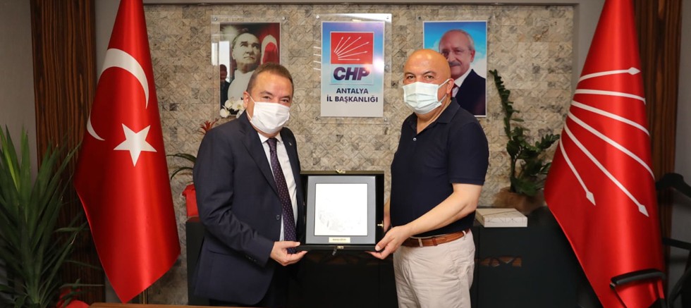 Antalya Büyükşehir Belediye Başkanı Muhittin Böcek, Cumhuriyet Halk Partisi Antalya İl Başkanlığını ziyaret etti. İl Başkanı Nuri Cengiz’in, “Evinize hoş geldiniz” diyerek karşıladığı Başkan Muhittin Böcek, “Mensubu olmaktan gurur duyduğum partimi ziyarete geldim, hoş buldum” dedi.