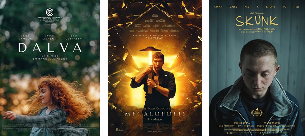 Özel gösterimiyle seyirciyi selamlayacak olan filmler arasında ise bu yıl; Fransız yönetmen Emmanuelle Nicot’un babasının etkisi altında büyüyen bir çocuğun tekrar sevmeyi öğrenme ihtiyacını irdelediği, bol ödüllü ilk uzun metrajı “Dalva / Dalva” Francis Ford Coppola'nın; Yeni Roma şehrinin yeniden inşası için çalışan, yetenekli mimar ile onun fikirlerine karşı çıkan belediye başkanının çatışmasını hikâye eden ve dünya prömiyerini 77. Cannes Film Festivali'nin ana yarışma bölümünde yapan “Megalopolis / Megalopolis” ve ve Ayşe Polat’ın karmaşık bir komplo, paranoya ve kuşaklar arası travma ağını odağına aldığı ve dünya prömiyerini Berlinale’nin Panaroma bölümünde yaptığı son filmi “Im Toten Winkel / Kör Noktada” bulunuyor.