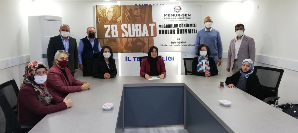 Memur-Sen Antalya Kadın Kolları Başkanı Zehra Atalay tarafından yapılan açıklamada “Milletin iradesinin ve egemenliğinin, çoğunluğu kadın olmak üzere, kamu görevlilerinin emeğinin, ekmeğinin, hak ve özgürlüğünün gasp edildiği 28 Şubat darbesinden bugüne, tam 24 yıl geçti. Post modern olarak tesmiye 28 Şubat askeri müdahalesi, o meşum Milli Güvenlik Kurulu toplantısının tarihiyle anılsa da, 90’lı yılların başında başlamış, bir ‘vesayet’ sürecidir” denildi.
