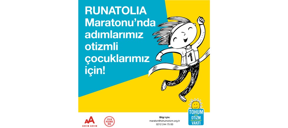Tohum Otizm Vakfı’nın 7. kez katıldığı Runatolia Maratonu’nda bireysel ve farklı firmaları temsil eden gönüllü koşucular; koşarak veya yürüyerek, adımlarını otizmli çocuklar için atacak, maratonun öncesinde ve sonrasında, toplamda 1 ay süresince sosyal çevresinden topladığı bağışlarla otizmli çocukların eğitimine katkı sağlayacaklar.