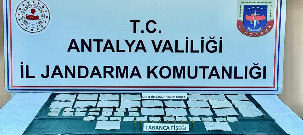 Antalya Valiliği İl Jandarma Komutanlığı ekiplerinin uyuşturucu madde imal ve ticaretine yönelik çalışmaları tüm hızıyla devam ediyor. Antalya Cumhuriyet Başsavcılığı talimatları doğrultusunda; Antalya İl Jandarma Komutanlığı Döşemealtı İlçe Jandarma Komutanlığı ekipleri tarafından şüpheli bir şahsın aracında arama yapıldı. Yapılan aramada sonucu; 10.000 kullanımlık sentetik cannabinoid (bonzai) uyuşturucu maddesi ve 10 adet 9 mm tabanca fişeğinin ele geçirildiği belirtildi.