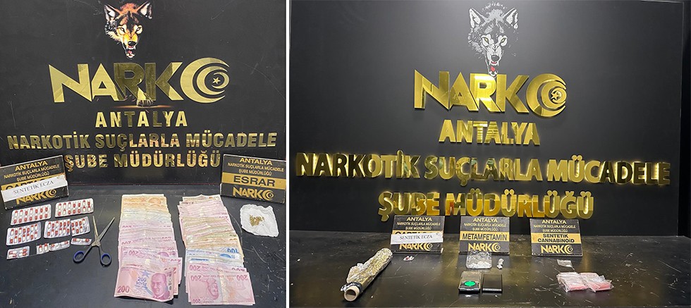 Antalya Emniyet Müdürlüğü'nden yapılan açıklamada şöyle denildi: "Emniyet Müdürlüğümüz Narkotik Suçlarla Mücadele Şube Müdürlüğümüz görevlilerince, ilimiz genelinde SON 1 HAFTADA yapılan çalışma ve operasyonlarda;