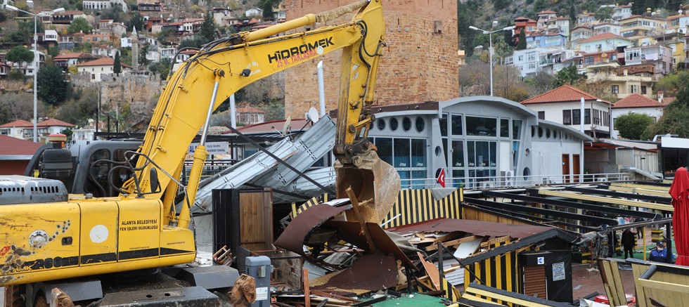 Alanya Belediyesi, İskele-Rıhtım Meydanı’nda bulunan kanuna aykırı yapıların yıkım işlemlerini gerçekleştirdi. 3 yapı, iş makineleri aracılığıyla zabıta ekiplerinin gözetiminde yıkıldı.