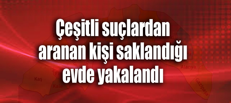 Alanya'da çeşitli suçlardan aranan ve hakkında 45 adet suç kaydı bulunan kişi saklandığı evde düzenlenen operasyonla yakalandı.