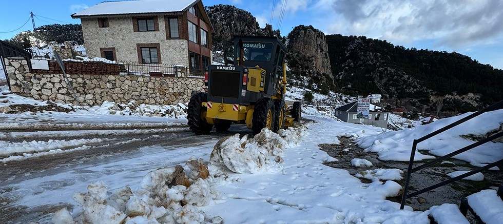 Kemer Belediyesi, Fen İşleri Müdürlüğü ekipleri, Kemer’in yüksek kesimlerine yağan kar nedeniyle kapanan bazı yayla yollarını trafiğe açıyor.