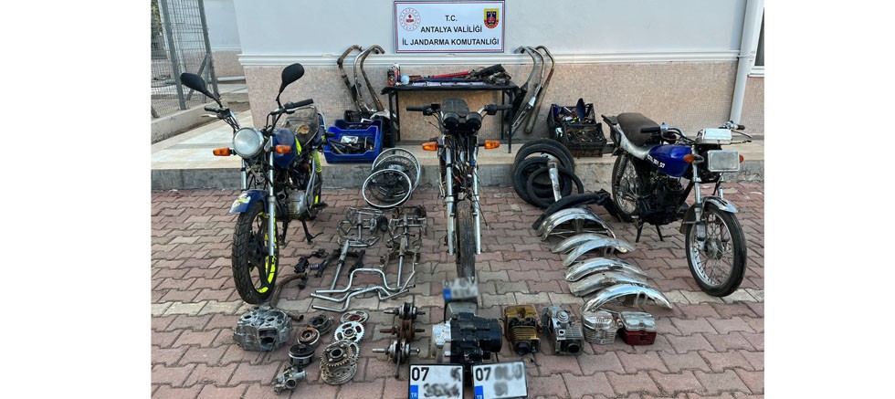 Antalya Cumhuriyet Başsavcılığı talimatları doğrultusunda; Antalya İl Jandarma Komutanlığına bağlı JASAT timleri ve Kepez İlçe Jandarma Komutanlığı ekipleri tarafından yaplan çalışmalarda Antalya ili Kepez İlçesinde şüpheli bir şahsın çalınan motosikletleri evinin yakınında kurmuş olduğu gizli atölyede boyama, parça değişikliği, blok ve şase numarasını kazıma işlemlerini yapmasının ardından piyasaya süreceğinin tespit edilmesi üzerine şüphelinin adresinde yapılan arama sonucunda;