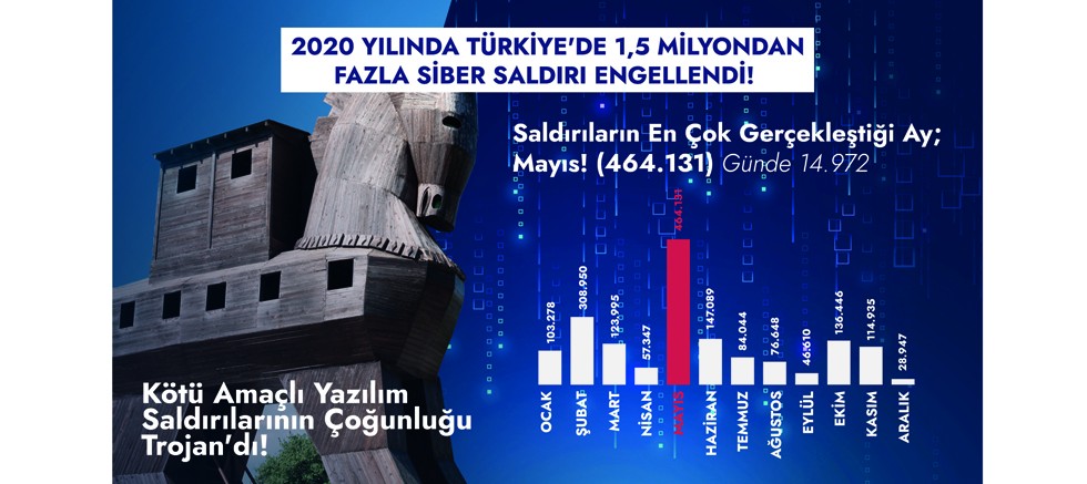 Siber güvenlik dünyasının her anı farklı olsa da WatchGuard Tehdit Laboratuvarı’na göre, hackerler bu yılın belirli aylarında yoğun mesai harcadı. Hackerlerin geçen yıl Türkiye’de en çok hangi ay saldırdığının ve en çok hangi saldırı türünü gerçekleştirdiğinin şirketler ve çalışanları için büyük önem taşıdığına dikkat çeken Yusuf Evmez, Türkiye’de özellikle Mayıs ayının hackerler için çok yoğun geçtiğini ve günde yaklaşık 15 bine yakın kötü amaçlı yazılım saldırılarının engellendiğinin altını çiziyor. Yıl boyunca gerçekleşen 1,5 milyon adet kötü amaçlı yazılım saldırısının 460 binden fazlasının Mayıs ayında gerçekleştiğini belirten Evmez, bunun en büyük nedeninin şirketlerin uzaktan çalışmaya tedbirsiz bir şekilde geçtiklerini hackerlerin fark etmesi olduğunu aktarıyor.