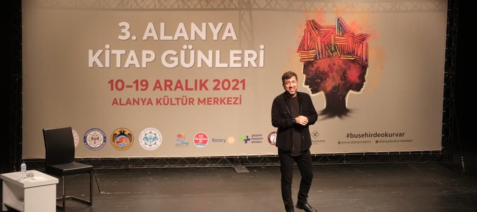 Salondakileri hem düşündüren hem güldüren Hakan Bilgin, söyleşini katılımcıların sorularını yanıtlayarak tamamladı. Alanya Alaaddin Keykubat Üniversitesi Rektörü Prof. Dr. Ekrem Kalan söyleşinin sonunda Hakan Bilgin’e teşekkür ederek Alanya’nın fethinin 800. yılı anısına hazırlanan tabloyu hediye etti.