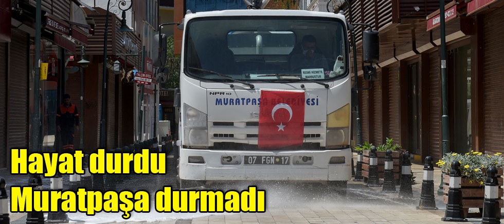 Muratpaşa Belediyesi ekipleri, hayatın durduğu kentte, giyim mağazaları, tuhafiye dükkanları, parfümeri ve aktarlarıyla adeta açık hava alışveriş merkezini andıran Sinan Mahallesi çarşısına girdi. Arazözlerle çarşının tüm sokakları başta sona yıkanıp ilaçlı sularla dezenfekte edilirken, iş makinelerinin çalışamadığı noktalara ise görevli personel ulaştı.