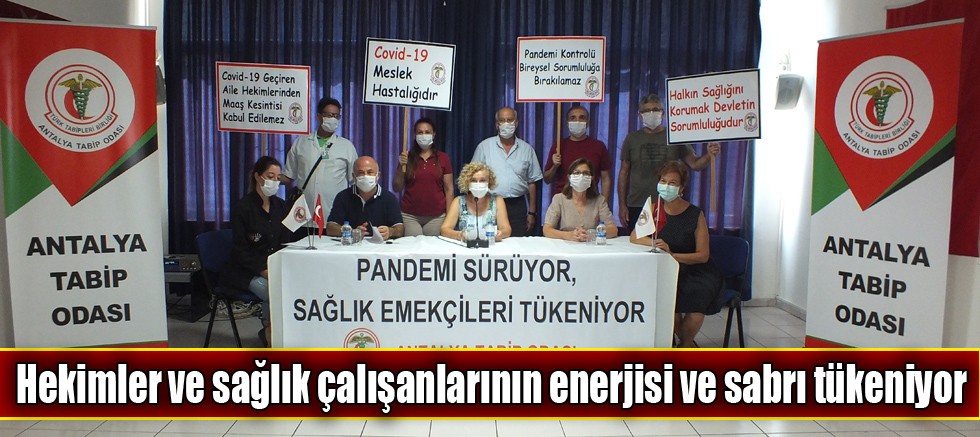 Tüm Türkiye’de eş zamanlı olarak “Pandemi sürecinde çalışma koşulları, özlük hakları ve ücretler” konulu basın açıklaması Antalya Tabip Odası toplantı salonunda yapıldı. Basın açıklamasına Antalya Aile Hekimleri Derneği ve Sağlık ve Sosyal Hizmet Emekçiler Sendikası yöneticileri de katıldı.