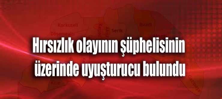 "Serik Cumhuriyet Başsavcılığı koordinesinde; Serik İlçe Jandarma Komutanlığı ekipleri tarafından Antalya ili, Serik ilçesi, Abdurrahmanlar Mahallesi'nde meydana gelen açıktan hırsızlık olayının şüphelisi olduğu tespit edilen A.E.Y. isimli şahıs düzenlenen operasyonda yakalanmıştır. Şüphelinin yapılan kaba üst aramasında,