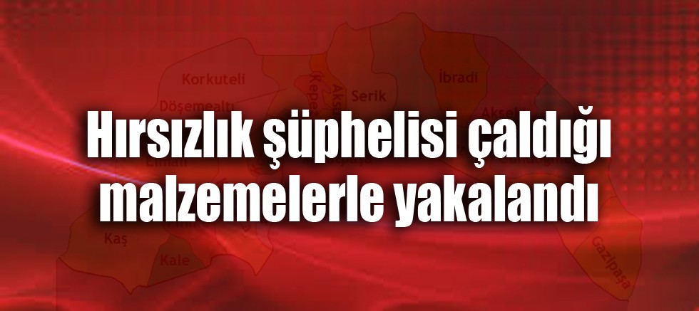 Antalya ili, Konyaaltı İlçesi, Doyran Mahallesi Saklıkent Mevkiinde 24.03.2022 günü meydana gelen Hırsızlık olayı ile ilgili yapılan çalışmalar sonucunda M.A.Y. isimli şüpheli çalınan malzemeler ile birlikte yakalandı.