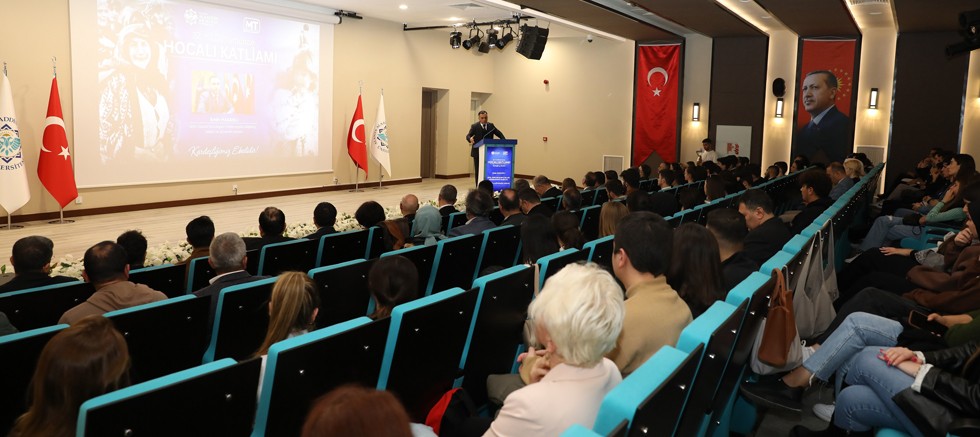 Alanya Alaaddin Keykubat Üniversitesinde (ALKÜ) düzenlenen “32. Yıl Dönümünde Hocalı Katliamı” isimli konferansta Ermenilerin Hocalı’da yaptıkları katliamlar, Azerbaycan Sivil Toplum Kuruluşları Başkanı Emin Hasanlı tarafından anlatıldı.