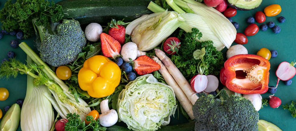Marul, roka, dereotu, maydanoz, havuç, şeker oranı düşük meyve (1 porsiyon; 1 küçük boy elma veya muz) gibi hücrelerin hasara karşı korunmasına, iltihabın azaltılmasına, tokluk sürenizin uzamasına, bağırsak alışkanlıklarınızın düzenlenmesine, kan şekerinizin ve tansiyonunuzun dengelenmesine yardımcı olan antioksidanlar ve fitokimyasallarla tabağınızın ½’sini doldurun. Fırınlanmış sebzeler veya az yağlı zeytinyağlıları da tercih edebilirsiniz.