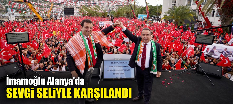 “Çok işimiz var” diyen İmamoğlu, “Devleti toparlayacağız. Cumhuriyeti demokrasiyle, devletimizi adaletimizle taçlandıracağız. Mutfaktaki yangını biz söndüreceğiz. Paramız pul olmaktan kurtaracağız. Eğitimde ve sağlıkta büyük atılımlar yapacağız. Bu milletin evlatlarına iş bulacağız. Hiçbir gencimizin umudunu yaban ellere yollamayacağız. Burada bulacaklar umutlarını. Esnafın, çiftçinin, işçinin ve memurun emeklerinin karşılığını aldığı, adaletli bir düzen kuracağız. Emeklinin maaşıyla rahatça geçinmesini sağlayacağız. Cumhurbaşkanımız, 13. Cumhurbaşkanımız ne dedi? ‘15 bin lirayı ikinci bayramda emeklilere vereceğiz’ dedi. Vereceğiz. Alanya için de çok şey yapacağız. Alanya'nın imal edilmiş bütün ulaşım projelerini hızlandıracağız. Antalya-Alanya arası hızlı tren ve otoyol projelerini bilimin ışığında, uzmanların fikirleriyle, ama özellikle de Muhittin Böcek dostumla ve sizin kararlarınızla yapacağız. Sizlerle yapacağız. Ortak akılla en doğru kararlarla hızla harekete geçeceğiz. Alanya'nın kentsel dönüşümünü, vatandaş için en kolay, en hızlı, en maliyetsiz yöntemle biz yapacağız. Biz işimizi biliyoruz. Ormanlarımızı ve yüreklerimizi yakan yangınlara karşı Alanya'yı güçlendireceğiz. Alanyalı çocukların, gençlerin, kadınların, emeklilerin yanında olacağız” ifadelerini kullandı.