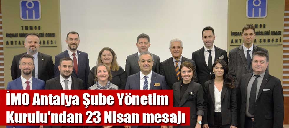 TMMOB İnşaat Mühendisleri Odası Antalya Şube Yönetim Kurulu, 23 Nisan Ulusal Egemenlik ve Çocuk Bayramı nedeniyle bir mesaj yayınladı. Yayınlanan mesajda şöyle denildi: