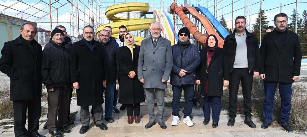Belediye Başkanı Şükrü Başdeğirmen, basın mensupları, belediye meclis üyeleri ve mahalle muhtarlarıyla birlikte Aquapark alanında incelemelerde bulundu.