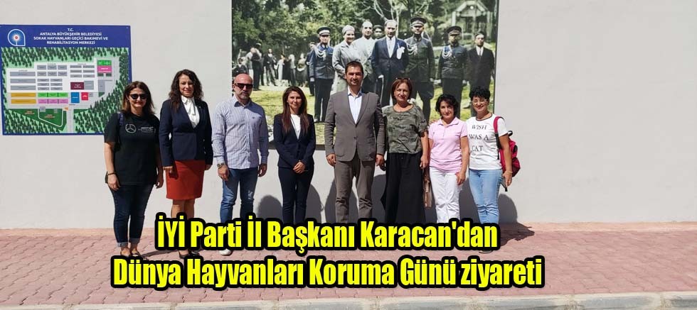 İYİ Parti İl Başkanı Vahdet Karacan, 4 Ekim Dünya Hayvanları Koruma Gününde, Büyükşehir Belediyesine ait olan Hayvan Bakımevin'e İl Yönetim Kurulu Üyeleri ile mama bağışında bulunup, Barınak Müdürü Veteriner Hekim Aslı Kılıç ile barınak hakkında bilgiler alıp, karşılıklı istişarelerde bulundu. Barınaktaki hayvanların steril şartlarda uzman hekim ve personel ile bakıma muhtaç hayvanlara gösterilen ilgi ve hizmetten dolayı il Başkanı Vahdet Afşin Karacan teşekkürlerini ifade etti, "Sadece bugün değil her gün bizim için Hayvanları ve Haklarını Koruma Günü" dedi.