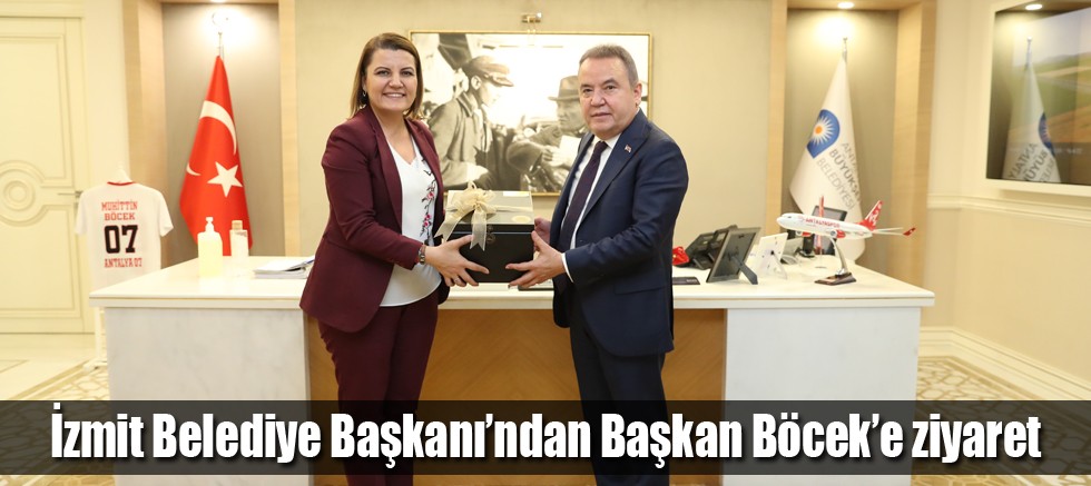 İzmit Belediye Başkanı Fatma Kaplan Hürriyet, belediye bürokratları ile birlikte Antalya’da yatırım ve proje gezisi yaptı. Antalya Büyükşehir Belediyesi’nin tarımsal projeleri başta olmak üzere yatırımlarını inceleyen Hürriyet, Büyükşehir Belediye Başkanı Muhittin Böcek’e de nezaket ziyareti gerçekleştirdi. Ziyaretten duyduğu memnuniyeti dile getiren Başkan Böcek, konuk başkana çalışmalarında başarılar diledi. ‘Hep birlikte daha güçlüyüz’ diyen Başkan Böcek, İzmit Belediyesi için her türlü desteği vermeye hazır olduklarını belirterek, her daim yanlarında olduğunu söyledi.