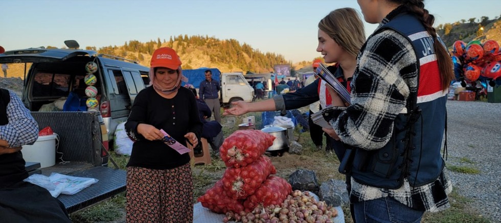 "Alanya İlçe Jandarma Komutanlığına bağlı Aile İçi Şiddetle Mücadele ve Çocuk Kısım Amirliği tarafından 02-03.07.2022 tarihlerinde Çamlıca Mahallesi Tokar yayla şenliklerinde farkındalık sağlamak maksadıyla “Kadına Şiddet İnsanlık Suçudur" yazılı pankart açılmıştır. Kadın ve erkek vatandaşlara Aile İçi Şiddet, KADES ve Teknik Araç ve Yöntemlerle Takip uygulaması olan Elektronik Kelepçe konuları anlatılarak kadınların akıllı telefonlarına KADES uygulaması yükletilmiştir. Konuyla ilgili vatandaşlara 1500 adet broşür dağıtılmıştır.