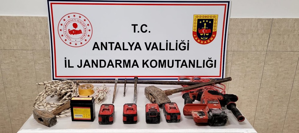 "Antalya Cumhuriyet Başsavcılığı talimatları doğrultusunda; 2863 sayılı Kültür ve Tabiat Varlıklarını Koruma Kanununa yönelik yapılan çalışmalar neticesinde Konyaaltı İlçe Jandarma Komutanlığına bağlı KOM Şube Müdürlüğünce Konyaaltı ilçesi Kelbessos antik kentinde izinsiz kazı yapıldığının tespit edilmesi üzerine yapılan operasyonda bahse konu bölgede (4) şahıs sit alanında izinsiz kazı yaptıkları esnada (15) kalem malzeme ile birlikte suç üstü yakalanmıştır.
