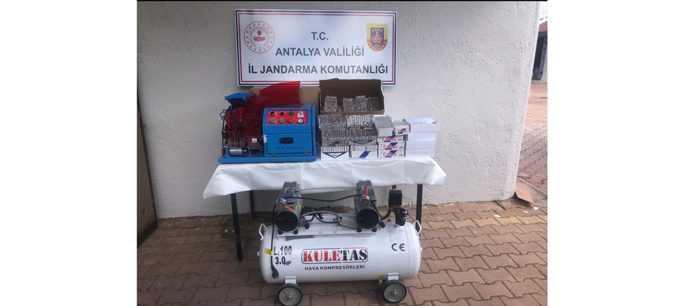 "Antalya Cumhuriyet Başsavcılığı koordinesinde, Antalya İl J.K.lığı Asayiş Şube Müdürlüğü JASAT Timleri, KOM Şube Müdürlüğü ekipleri ve Kepez Merkez J.Krk. K.lığı ekiplerince Antalya İli Kepez ilçesi Kütükçü Mahallesinde Suriye uyruklu l.B.Y. isimli şahsın sigara imalathanesinde kaçak sigara üretimi ve ticareti yaptığının tespit edilmesi üzerine şüphelinin Kepez İlçesi Kütükçü mahallesinde bulunan evinde ve eklentilerinde yapılan aramada;