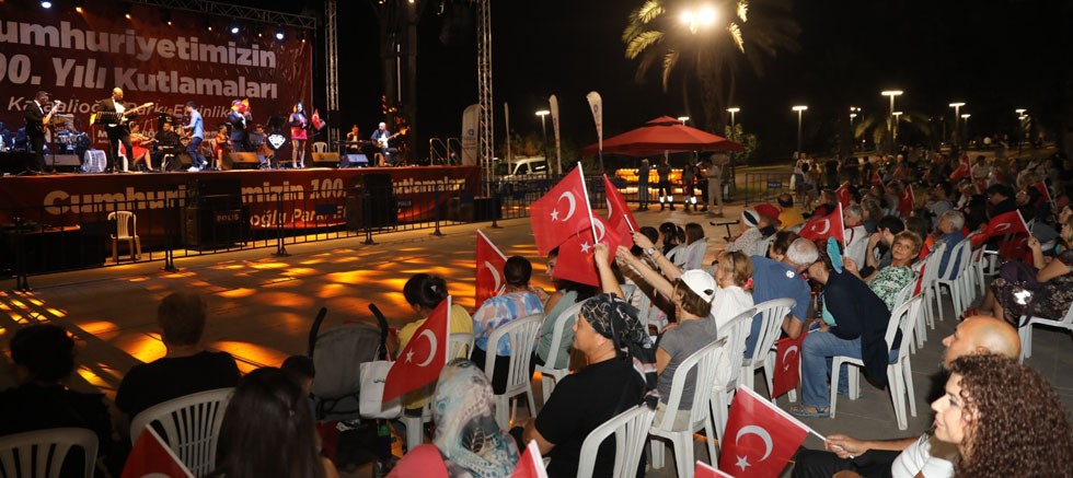 Antalya Büyükşehir Belediyesi, Cumhuriyetin 100 Yılı’nın kent merkezi ve ilçelerde birbirinden farklı etkinliklerle kutlamaya devam ediyor. Kutlamalarının bir adresi de Karaalioğlu Parkı. Orta miradorda gerçekleştirilen Cumhuriyet'in 100. Yılı kutlamalarında sahneye çıkan Antalya Büyükşehir Belediyesi Bando ve Kent Orkestrası seslendirdiği marş ve şarkılarla vatandaşları mest etti. Ardından sahne alan Ümit Burak Tekinay ve Cyristal Band Orkestrası ise Vardar Ovası, Bülbülüm Altın Kafeste, Manastır’ın Ortasında gibi Atatürk'ün sevdiği şarkıların yanı sıra Hey On beşli, Çanakkale Türküsü gibi kahramanlık türküleri seslendirdi.