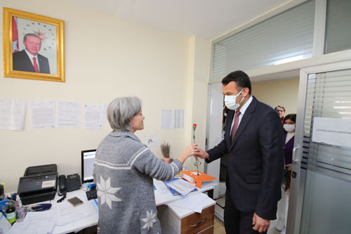 Daha sonra, diğer kurum ve işletmelerde çalışan kadınları ziyaret eden Başkan Ulutaş, günlerini kutlayarak, çiçek takdim etti.