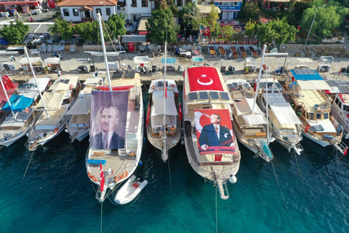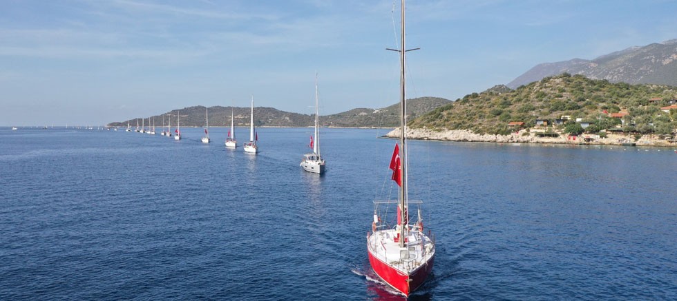 Antalya’nın Kaş ilçesinde Cumhuriyetin 100. yılı etkinlikleri çerçevesinde denizde geçit töreni yapıldı. Cumhuriyet 100 tekne ile selamlandı.
