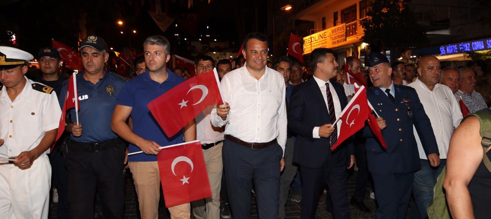 Antalya’nın Kaş ilçesinde 30 Ağustos Zafer Bayramı dolayısıyla fener alayı ve konser düzenlendi.