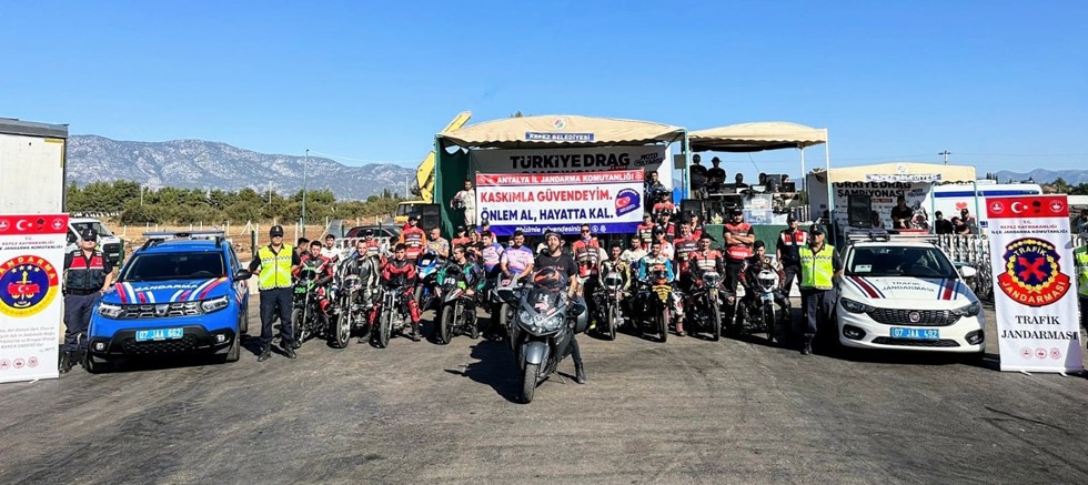 "Antalya İl Jandarma Komutanlığı Trf.Şb.Müdürlüğü ve Kepez İlçe J. K.lığı ekipleri tarafından motosiklet kazalarını önlemek amacıyla, Türkiye Motosiklet Federasyonu Başkanlığı işbirliği ile, "Motodrag Yarışlarında" farkındalık sağlamak amacıyla, "Kaskımla Güvendeyim" projesi kapsamında, Motosiklet, motorlu bisiklet ve elektrikli bisikletlerde sürücülerin koruma başlığı ve gözlüğü, yolcuların ise koruma başlığı bulundurması ve kullanması konularında bilgilendirme yapılmıştır.