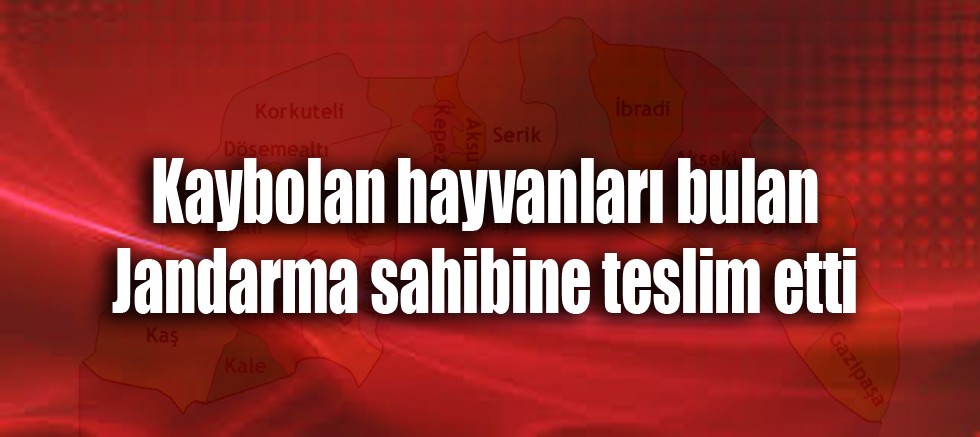 "Kaş Cumhuriyet Başsavcılığı koordinesinde; Antalya İli, Kaş İlçesi,Kızılağaç Mahallesinde hayvancılık işi ile uğraşan H.T. isimli şahsın 03.04.2022 günü saat:18.00 sıralarında (11) adet koyun, (3) adet keçi olmak üzere (14) adet küçükbaş hayvanının kaybolması olayı ile ilgili Antalya İl Jandarma Komutanlığına bağlı Kaş İlçe Jandarma Komutanlığı ekipleri tarafından yapılan arama çalışmaları sonucunda hayvanlar ahırın yaklaşık olarak (13) km uzağında bulunmuştur. Bulunan küçükbaş hayvanlar, sahibi H.T. isimli şahsa teslim etmiştir.