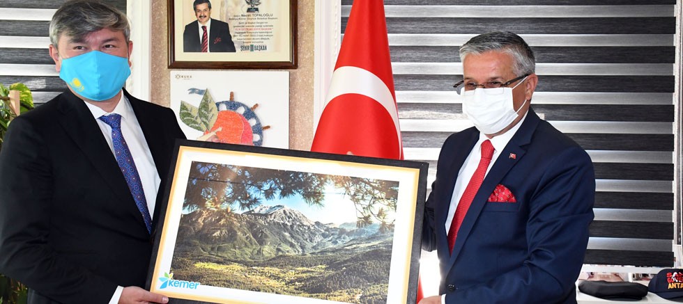 Kazakistan Büyükelçisi Abzal Saparbekuly, Kemer Belediye Başkanı Necati Topaloğlu ile bir araya geldi.