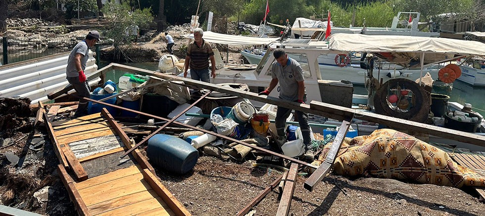Kemer Belediyesi Zabıta Müdürlüğü ekipleri, sit alanı içerisinde yer alan Kemer Balıkçı Barınağı’nda izinsiz yapılan yapıları kaldırdı.