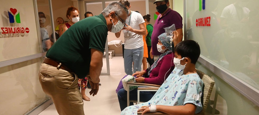 Kemer Belediye Başkanı Necati Topaloğlu, sünnet ettirilen çocukları ve ailelerini hastanede ziyaret etti.