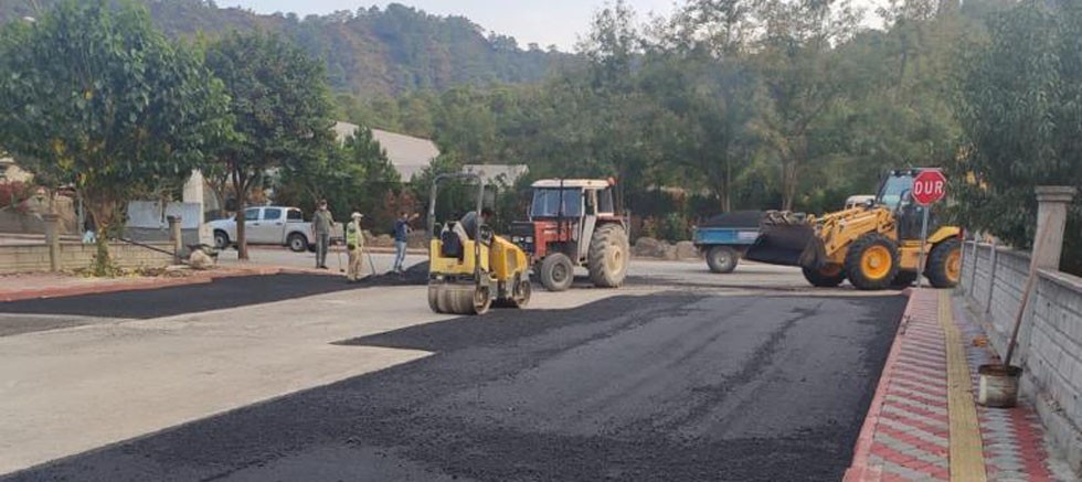 Kemer Belediyesi Fen İşleri Müdürlüğü ekipleri, ilçe genelinde bozuk yollarda asfaltlama çalışması yapıyor.