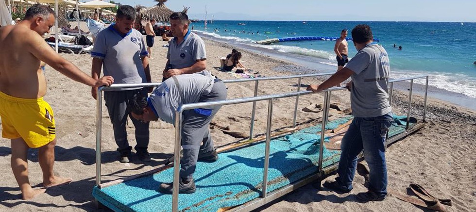 Tekirova Mahallesi Rixos Otel arkasında bulunan yolda yaklaşık 200 metrelik yol yapım çalışmasına devam eden belediye ekipleri, Göynük Mahallesi’ndeki halk plajında bulunan engelli rampasını yeniledi.