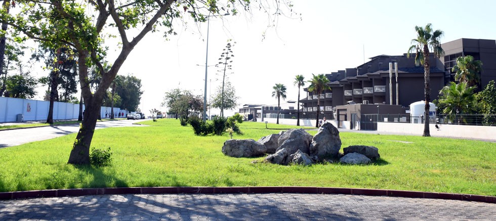 Belediye Fen İşleri ile Park ve Bahçeler Müdürlüğü ekipleri, Kiriş Mahallesinde otellerin yan tarafındaki alanda park çalışmalarını tamamladı.