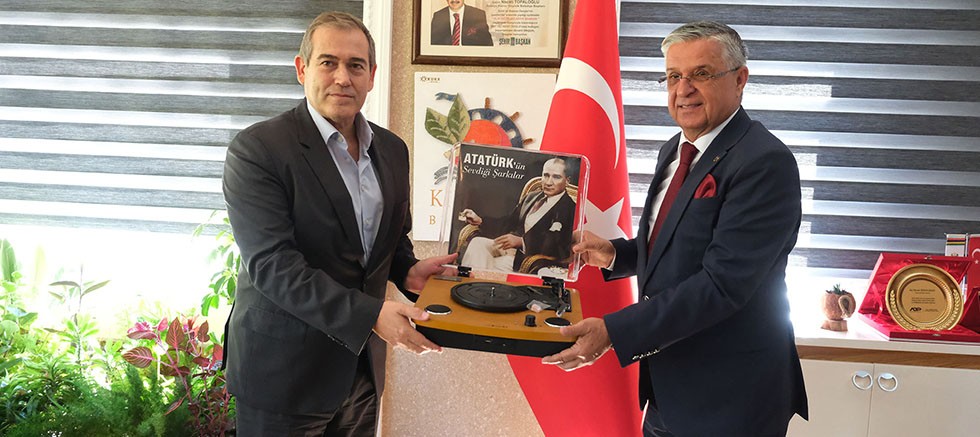 Ziyaret sonrası ATSO Başkanı Hacısüleyman, Başkan Topaloğlu’na, içerisinde Gazi Mustafa Kemal Atatürk’ün sevdiği şarkıların olduğu plak olan bir gramofon hediye etti.