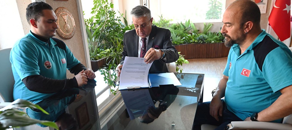 Kemer Belediye Başkanı Necati Topaloğlu ile Kemer Arama ve Kurtarma Derneği (KEMKUT) Başkanı Emre Uğur iş birliği protokolü imzaladı.