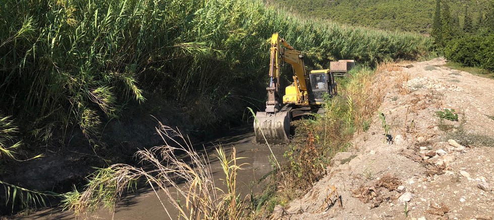 Kemer Belediyesi Fen İşleri Müdürlüğü ekipleri, dere ıslah çalışmaları yapıyor.