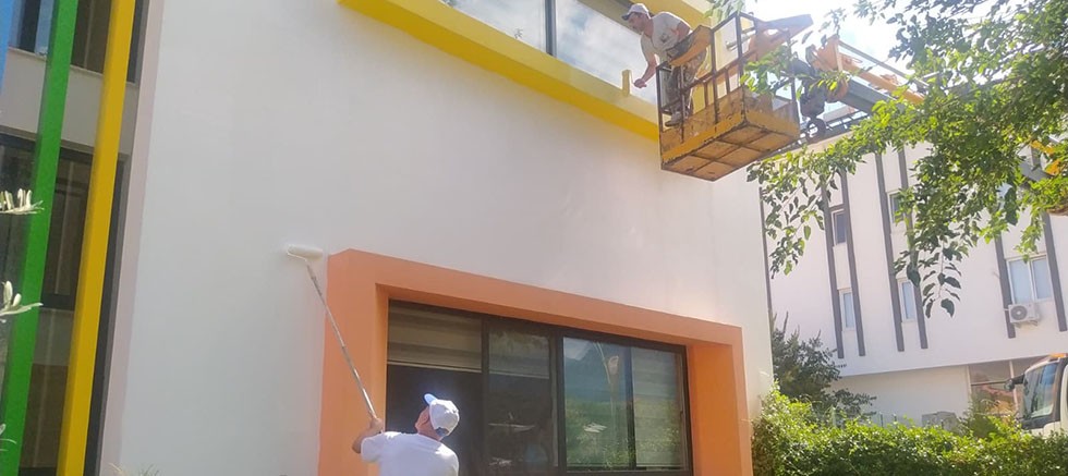 Kemer Belediye Başkanı Necati Topaloğlu’nun girişimleriyle hayırsever iş insanı ve Kemer’in ilk turizmcilerinden olan Orduvar Akman ve eşi Ülker Akman tarafından eğitime kazandırılan Kemer Belediyesi Ülker -Orduvar Akman Kreş ve Gündüz Bakımevi’nin çatlayan ve tahrip olan iç ve dış cephelerinde bakım çalışmaları ve boya badana çalışması yapılıyor.